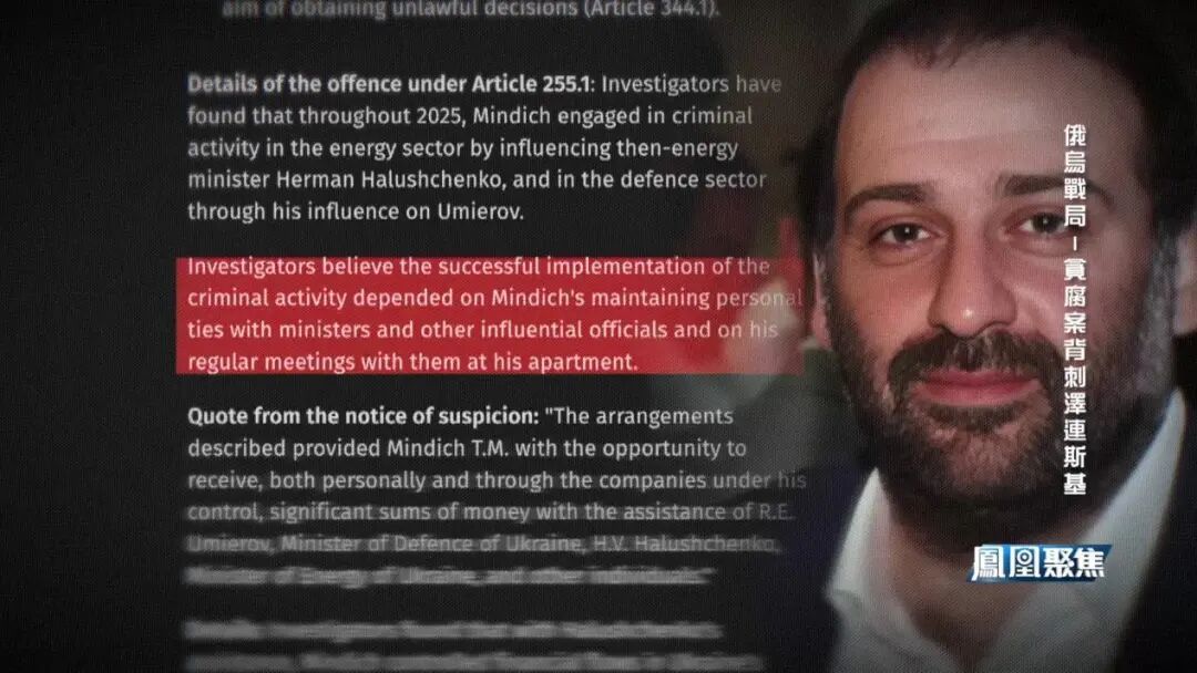 能源领域的腐败只是冰山一角。前乌国防部长、现国家安全与国防委员会秘书乌梅罗夫,被指在会见明季奇后签署了一批防弹背心的采购合同,而这批由明季奇推介的供应商提供的产品,最终被发现存在质量问题,合同被悄然终止。